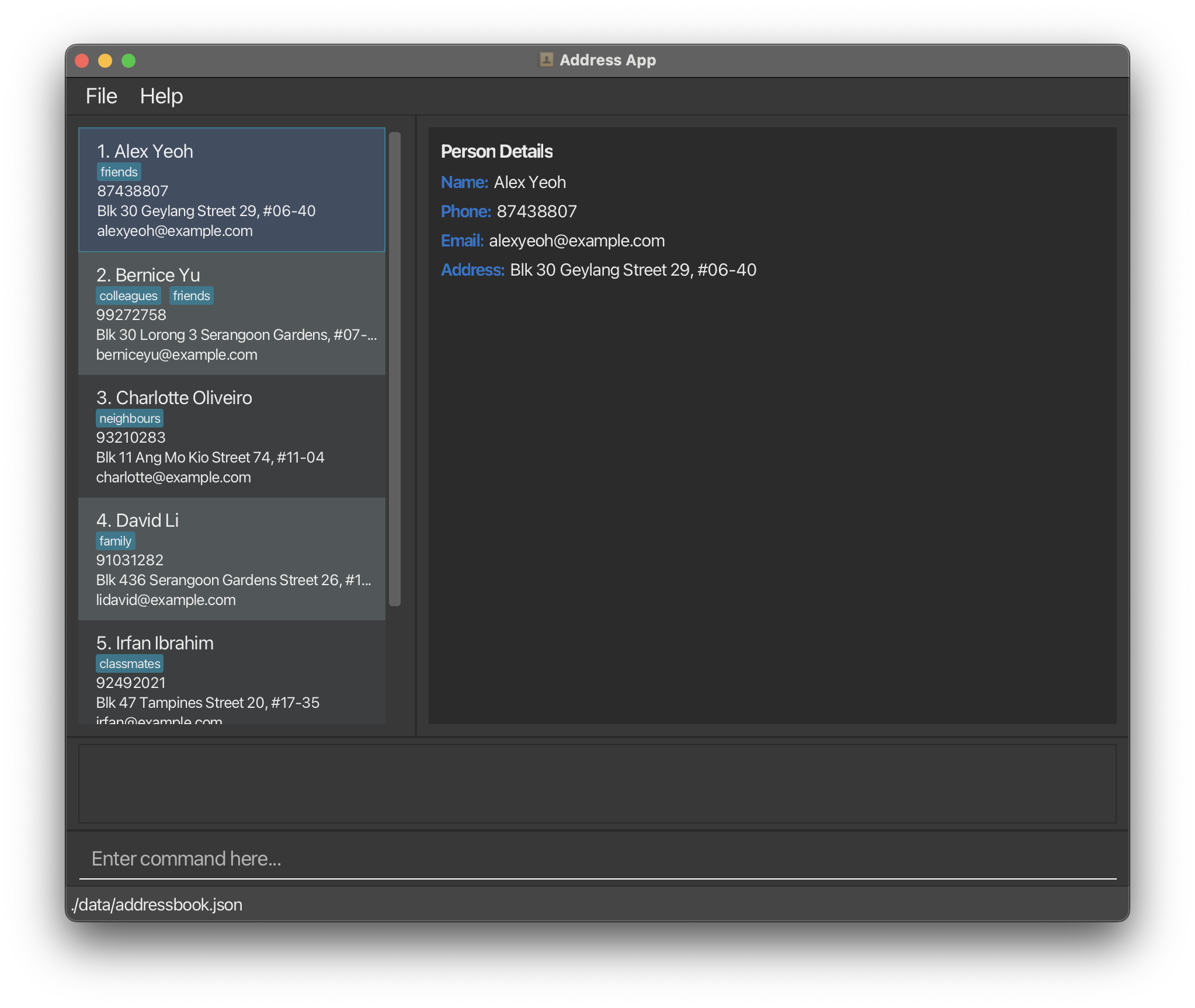 AddressBook is a desktop application for managing your contact details. While it has a GUI, most of the user interactions happen using a CLI (Command Line Interface).